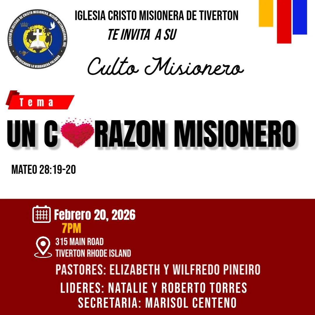Este Domingo 12 de Octubre la Iglesia les invitan a que juntos adoremos al Señor. Si vives en el are de Tiverton RI o sus alrededores y no tienes una Iglesia donde congregarte, haz esta tu casa.